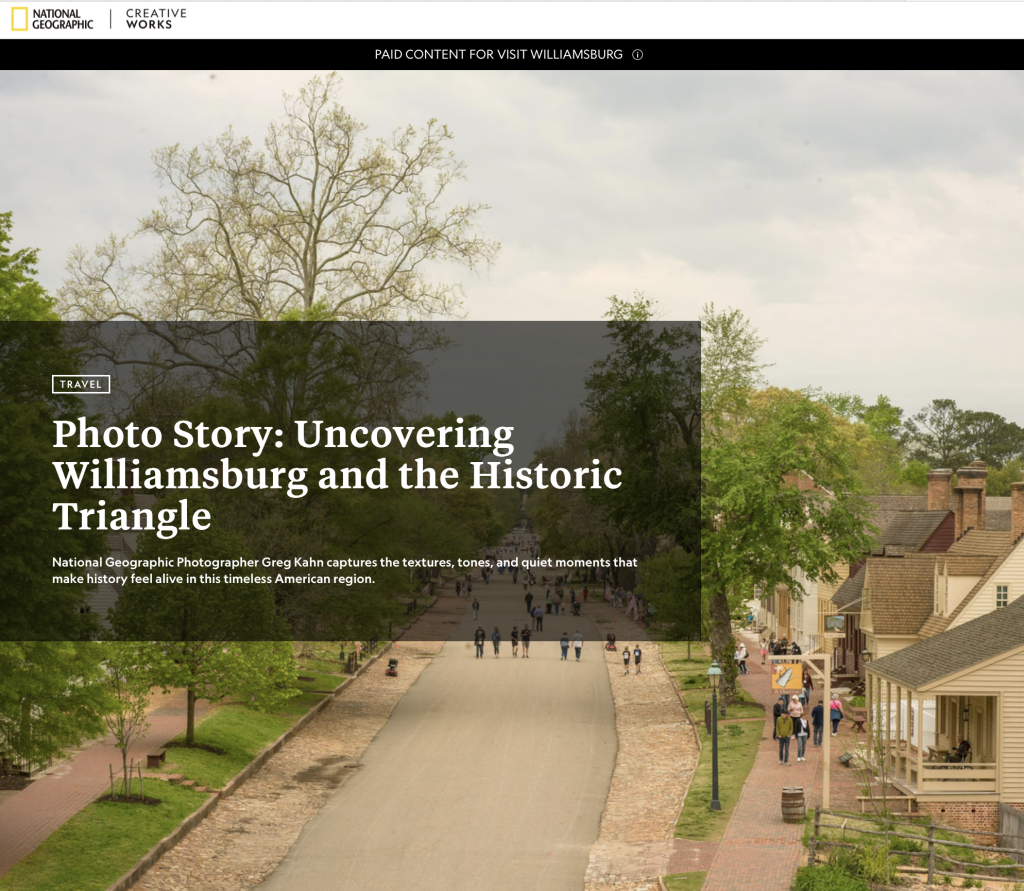 Visit Williamsburg with National Geographic. Classic bread & butter work, reach an audience who want to travel, give them a reason to consider your destination.