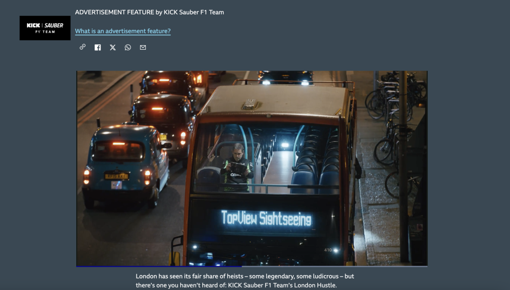 F1 Kick Sauber on Top Gear. Fun branded film for their car launch.
