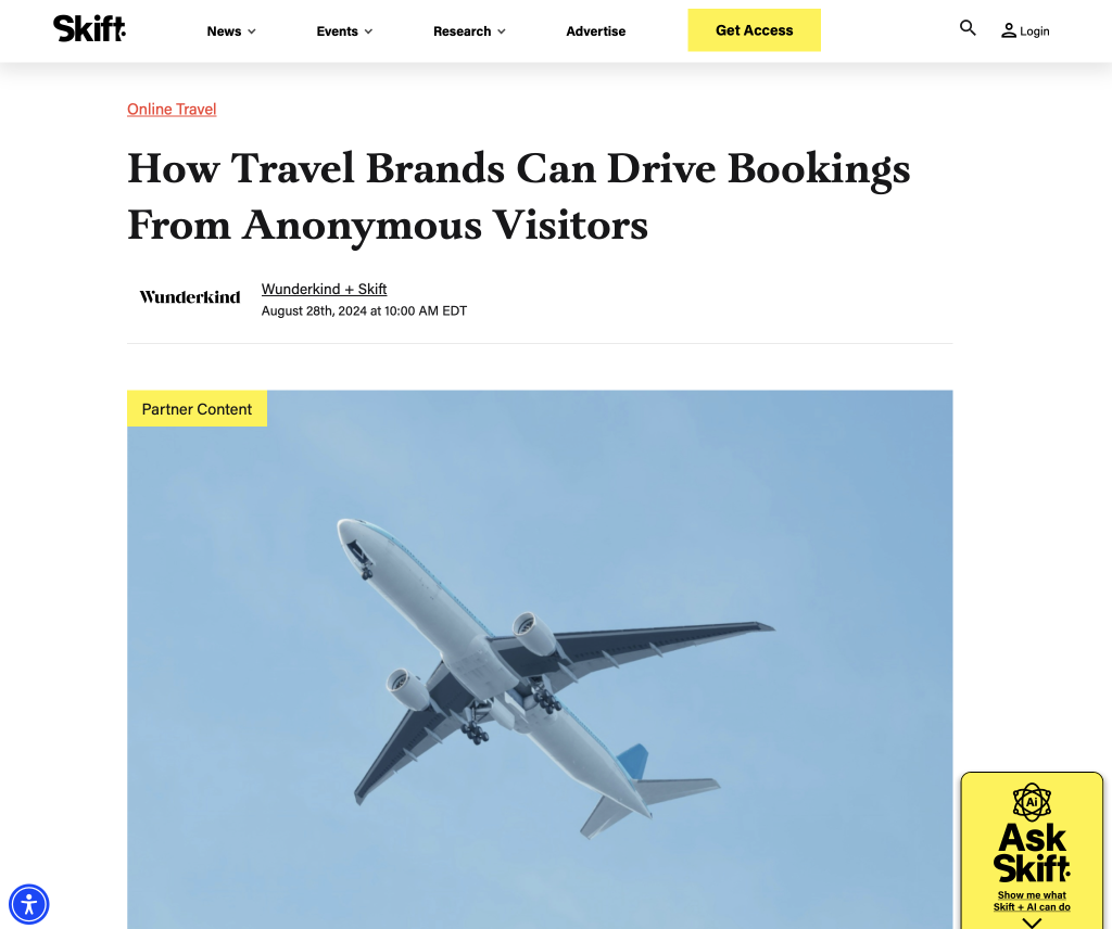 How travel brands can drive bookings from anonymous visitors. Wunderkind + Skift.