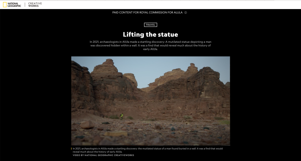 National Geographic with Royal Commission for Alula. Like the educational approach, which fits both Nat Geo but also Alula Tourism.