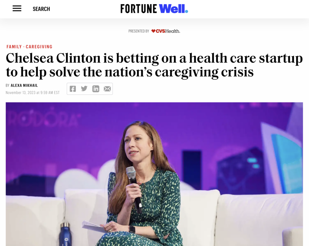 CVS Health on Fortune, Chelsea Clinton is betting on a health care startup to help solve the nationโs caregiving crisis.