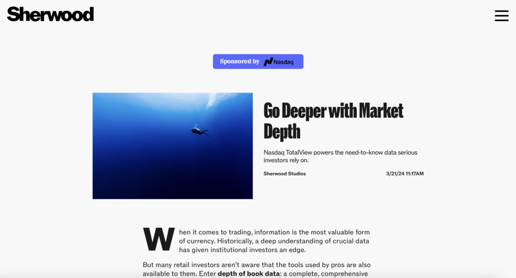 Sherwood News with Nasdaq. We predicted this at 45 seconds, about 25% below Finance benchmarks for branded content.