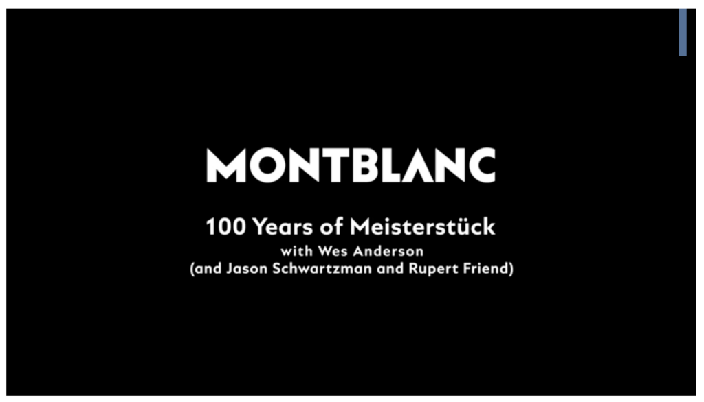 Montblanc with Wes Anderson, 100 years of Meisterstruck, a short film. Brilliant. I didn’t realise the logo was a snowcap. As soon as it finished, I watched it again!